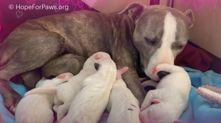 Three years ago, a concerned man noticed a visibly pregnant pit bull wandering near his home. She was exhausted, malnourished, and clearly struggling. Rather than turning away, he chose to act, contacting Hope For Paws, a Los Angeles–based rescue organization known for responding to animals in urgent need.