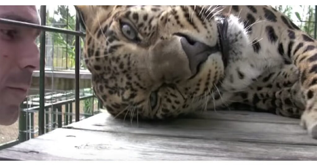 The giant leopard purrs in a way reminiscent of a house cat in front of a fire. It’s so great to see him truly content!