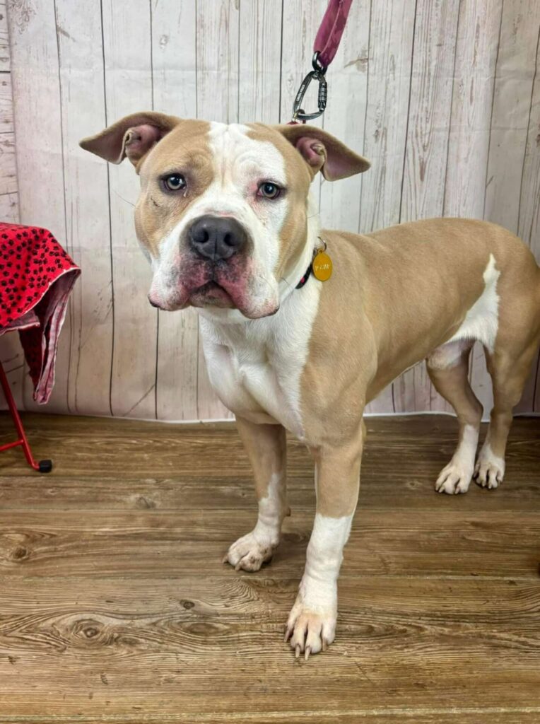 “He has settled in nicely here at the shelter and has quickly become a favorite,” said Jill Henke, operations director at Gateway Pet Guardians. “Adobe is super sweet, but can be a little shy with new people. Once he warms up, he’s incredibly silly and loves being around people. He adores other dogs, too, and is very treat-motivated.”
