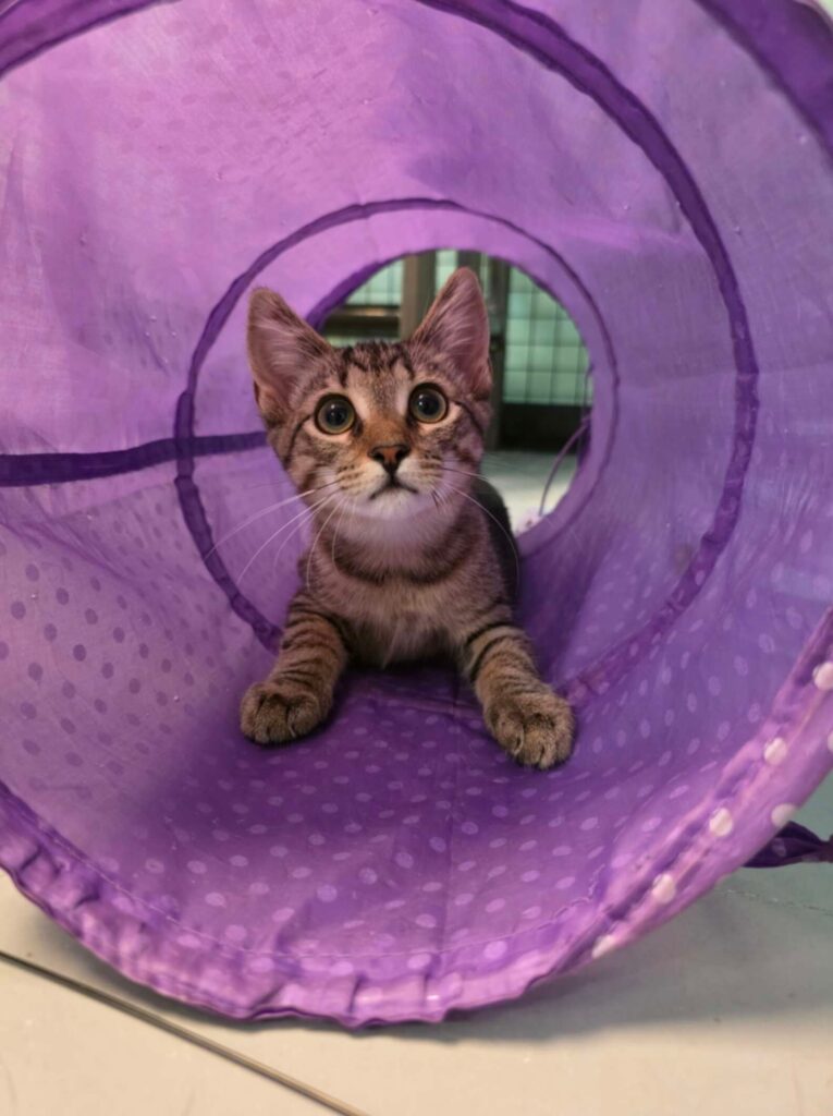 Colleen, a 13-week-old kitten with a personality far bigger than her small frame, had already captured hearts at the shelter. From the moment she arrived, staff noticed something unusual — she didn’t have a tail. Whether it was the result of an injury or something from her unknown past, no one could say. What they did know was this: nothing about her slowed her down. She moved through the shelter like a spark of light, weaving between other kittens, curling into warm piles of fur, chasing shadows, and seeking affection wherever she could find it.