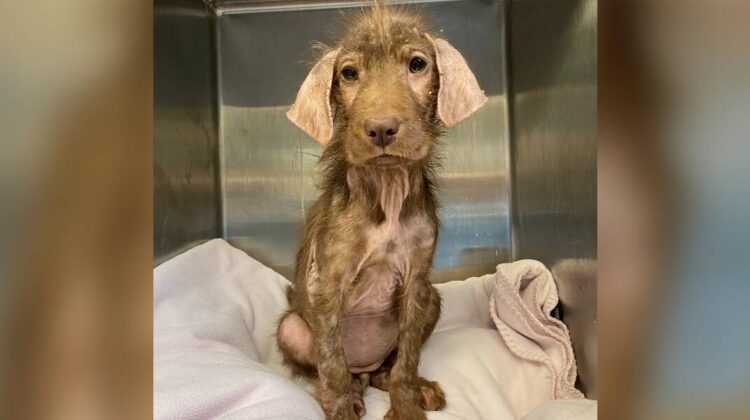 Scrawny, sick, and completely hairless, the little pup was taken to a local shelter — but her condition was so bad, the shelter couldn’t give her the care she needed.