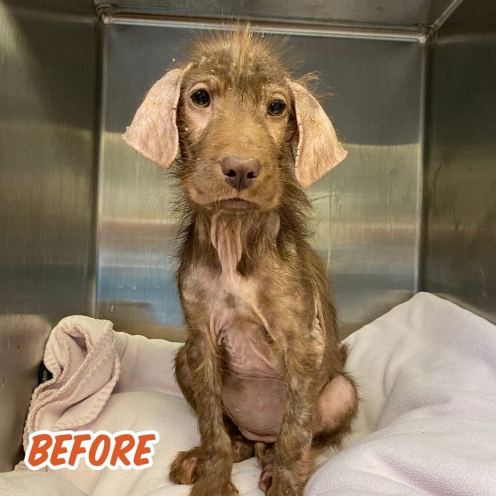 “She tested positive for parvovirus and had severe sarcoptic mange.”