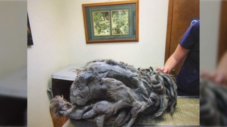 The cat was found by a staff member at an animal shelter in Nevada, after she opened the door and saw a box. When she looked down, the staffer could barely make sense of what was inside. Soon, however, it became clear that the pile of clumped and ragged fur was actually a cat.