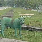 Dog found painted green, crying and looking for food