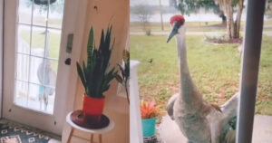 Smart crane knows how to knock on the door to ask for food — homeowner befriends bird and his family