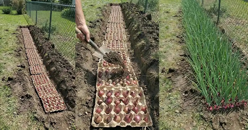 Planting onions doesn’t have to be complicated. Gardeners have discovered a clever and simple technique that uses something many people already have at home — paper egg cartons.