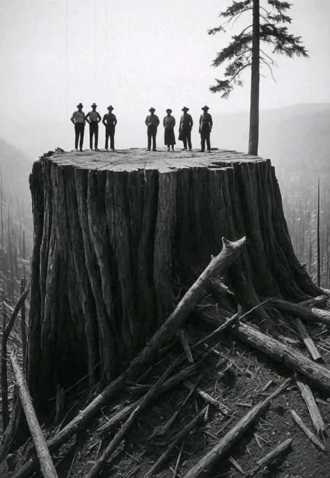 A photograph taken in 1899 captured a moment that symbolized both the majesty of nature and the tragedy of its loss. On the vast stump stood people who looked like tiny figures against what was once a living colossus. A thin trunk, left jutting from the middle, resembled a frail reminder of a life that could never be restored.
