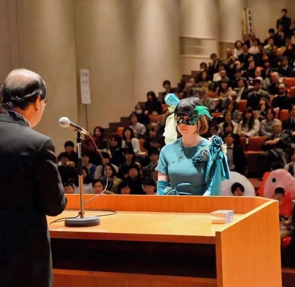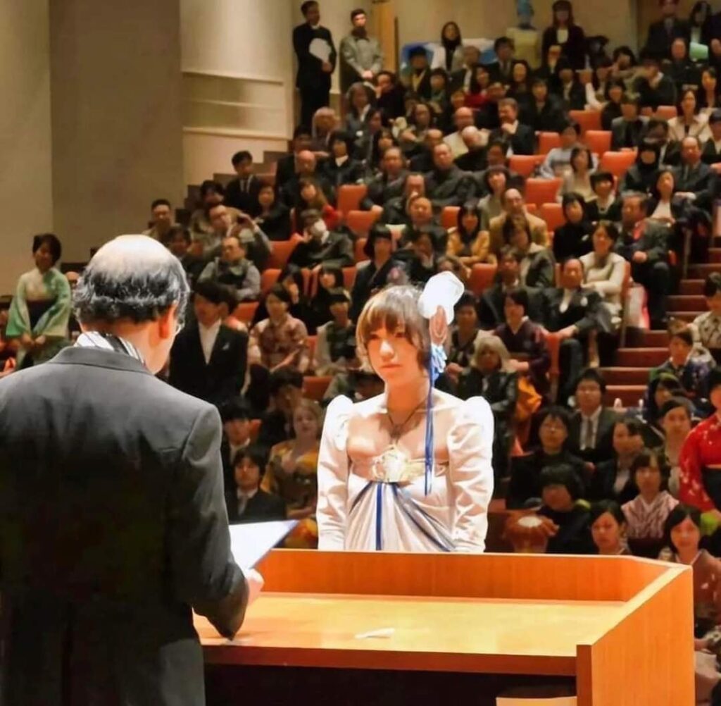 Instead of rows of identical gowns, the graduation hall fills with extraordinary outfits. Some students choose formal Japanese attire. Others arrive in cosplay ranging from Pikachu, Naruto, and Demon Slayer, all the way to full suits of armor, cartoon mascots, historical figures, and even costumes modeled after everyday snacks.