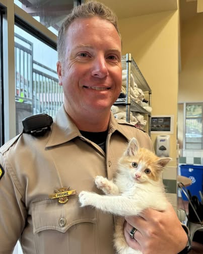Last month, California Highway Patrol Officer Ryan Moore responded to a call from a motorist who “saw a scared kitten” on the highway in Monterey County, according to a Facebook post from SPCA Monterey County.