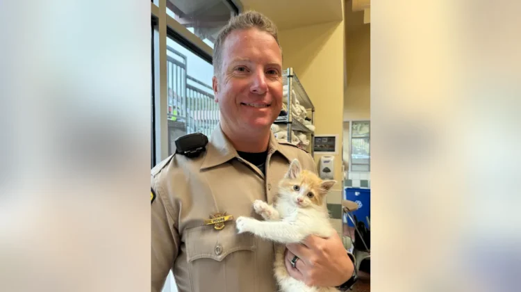 Last month, California Highway Patrol Officer Ryan Moore responded to a call from a motorist who “saw a scared kitten” on the highway in Monterey County, according to a Facebook post from SPCA Monterey County.
