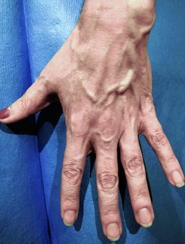 Swollen hands may make veins appear less visible.