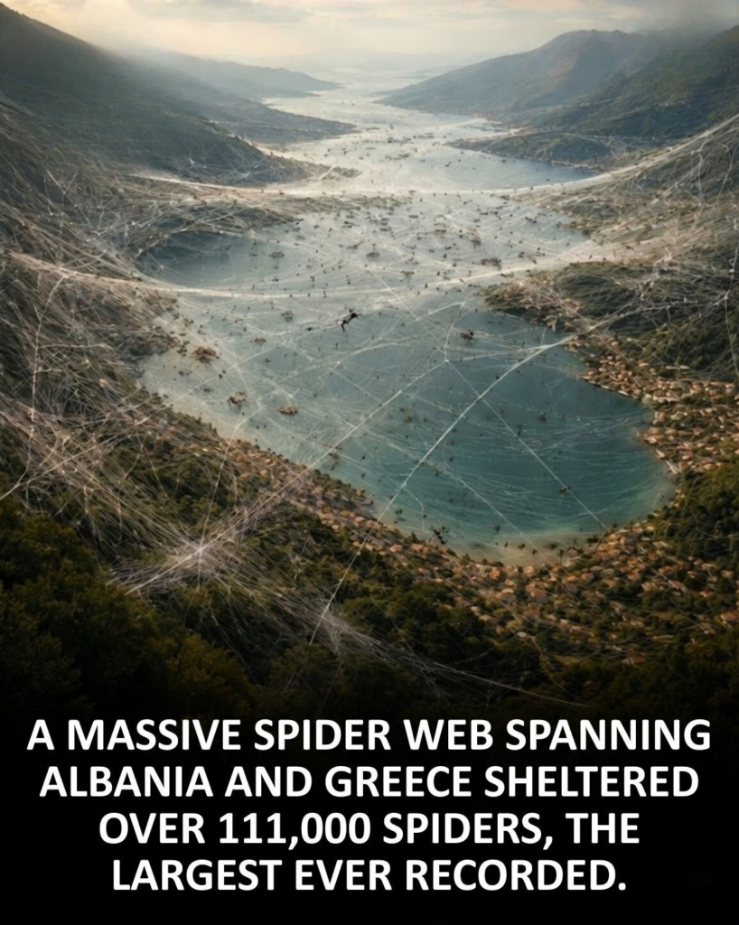 Scientists have identified what may be one of the largest interconnected spiderweb systems ever recorded, deep inside a cave along the border between Albania and Greece.