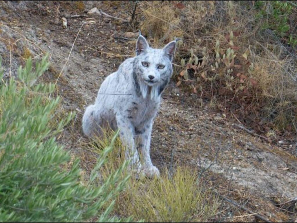 In the heart of southern Spain’s Jaén mountains, where sunlit ridges meet misty valleys, a rare and haunting sight has left the world in awe. A feline, thought to be extinct in its unique form, emerged — a white Iberian lynx, its snow-white coat glimmering in the morning light, eyes piercing the forest like lanterns in the dark.